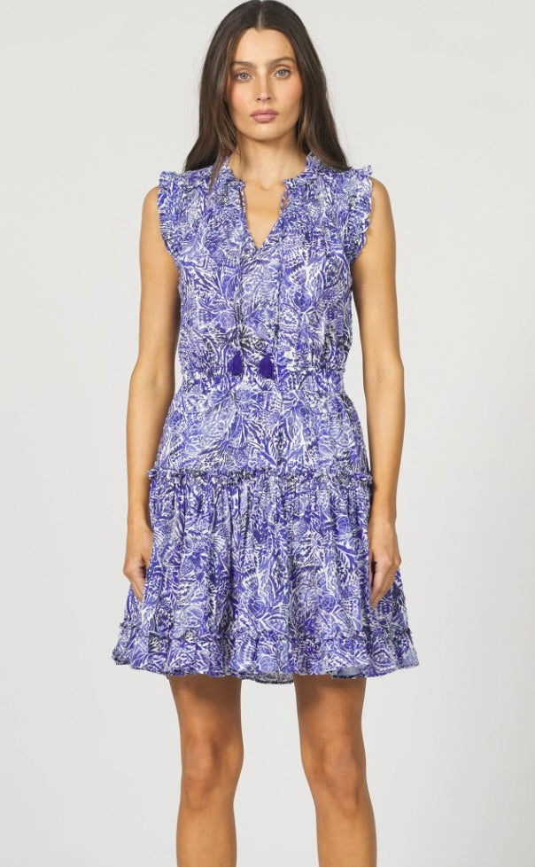 Effortless elegance in the Melodie portofino paisley dress, a sleeveless masterpiece featuring delicate ruffle details and a relaxed fit,