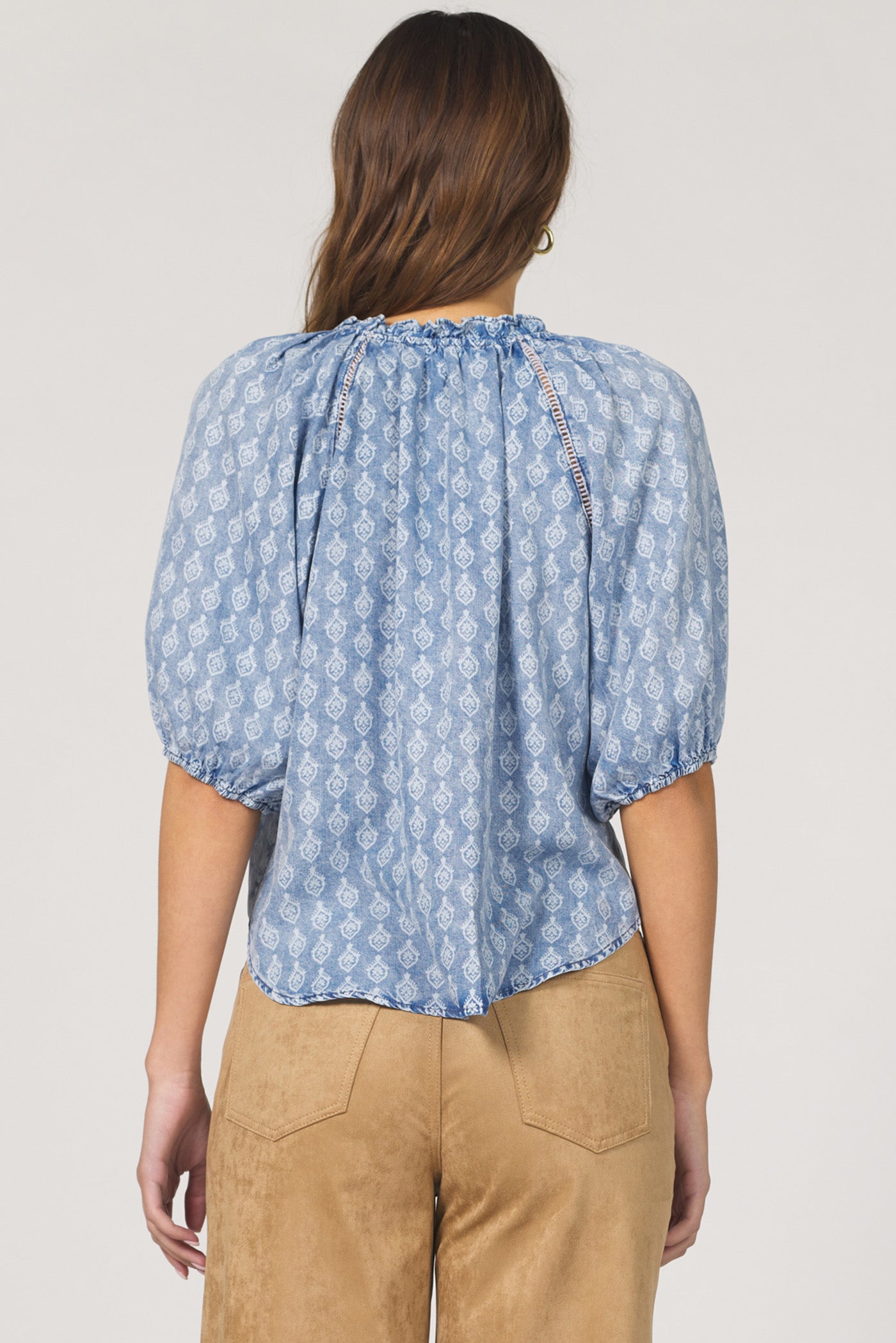 The Costa top is elegance with the poet's blouse featuring a delicate ladder trim.