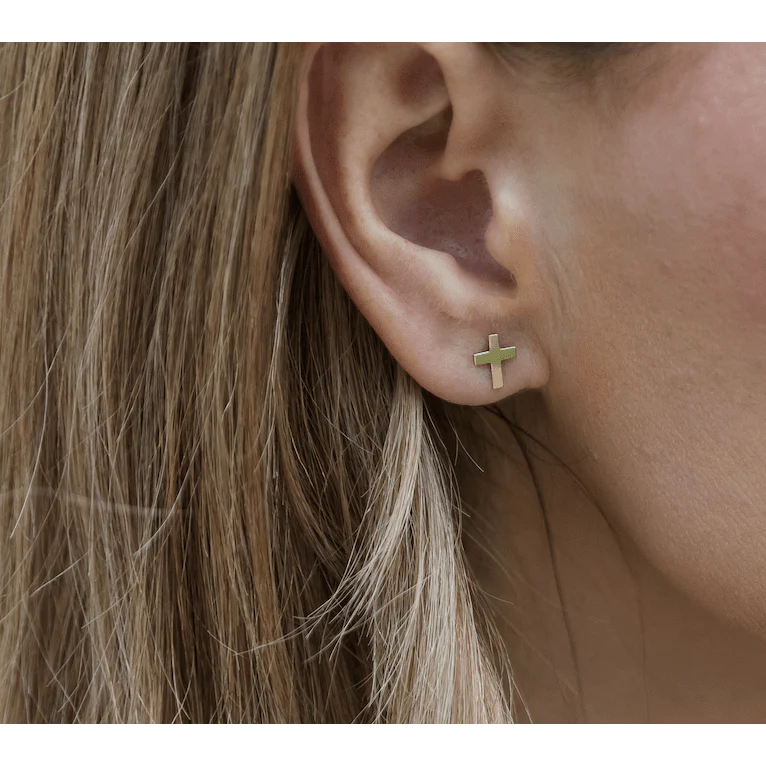 These classic 14k gold-filled cross stud earrings feature a timeless design and secure post backing. Perfect as a meaningful gift for someone special, they are also waterproof for everyday wear.