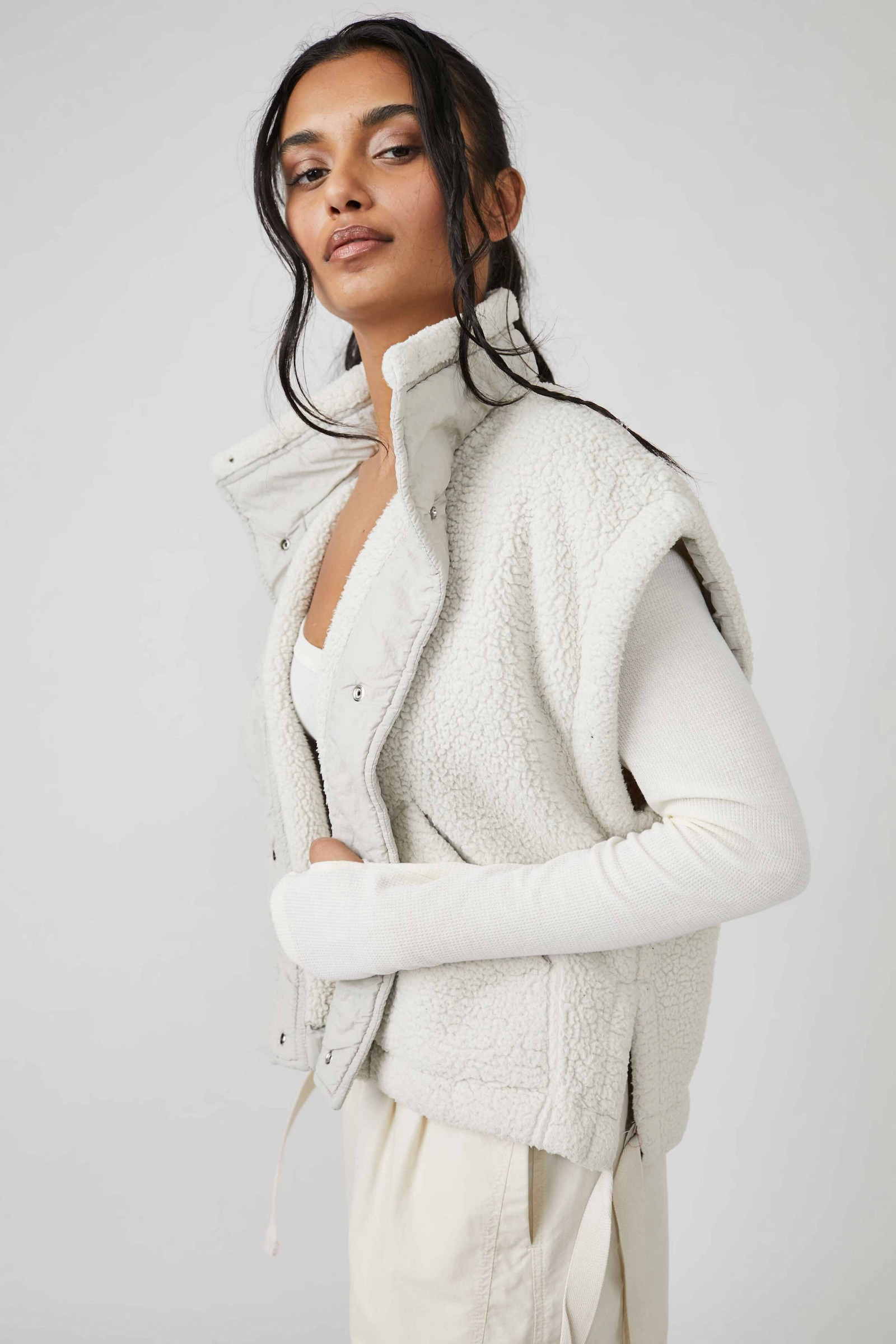 So necessary for your next camping trip, this cozy fleece vest is featured in an oversized fit and classic sleeveless design with a button-front closure and cozy hand pockets.