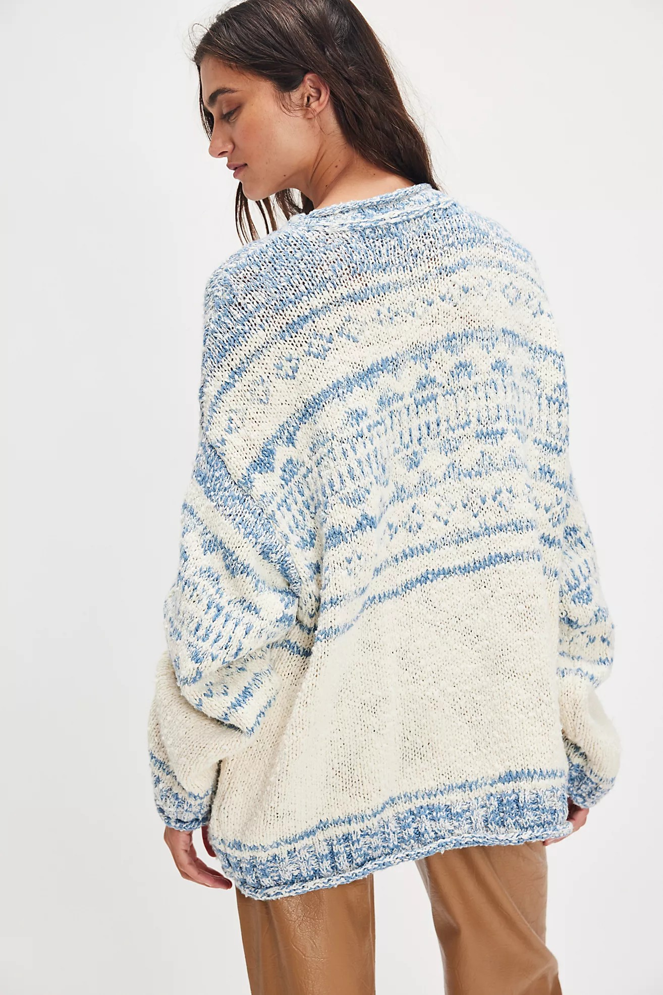 Effortless comfort and style are yours in this cozy long-sleeve sweater, featuring a slouchy oversized fit, knit fabrication, and a charming Fair Isle-inspired pattern.