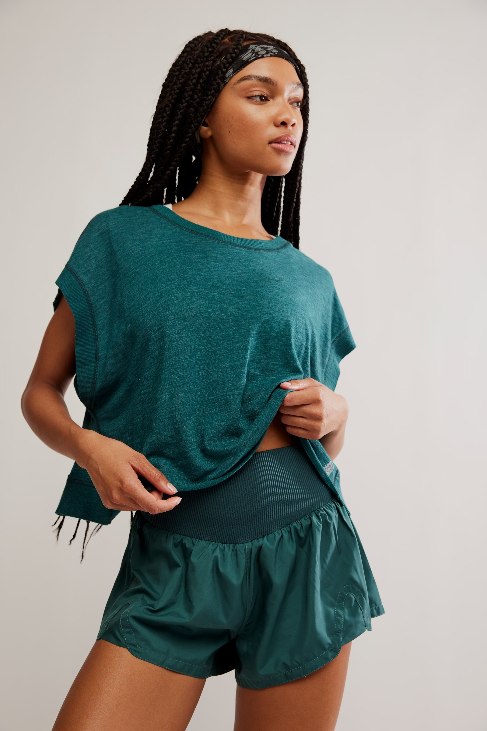 Seize the run in these so-flattering shorts, featuring a durable, water-resistant fabrication, built-in briefs and a knit high-rise waistband.