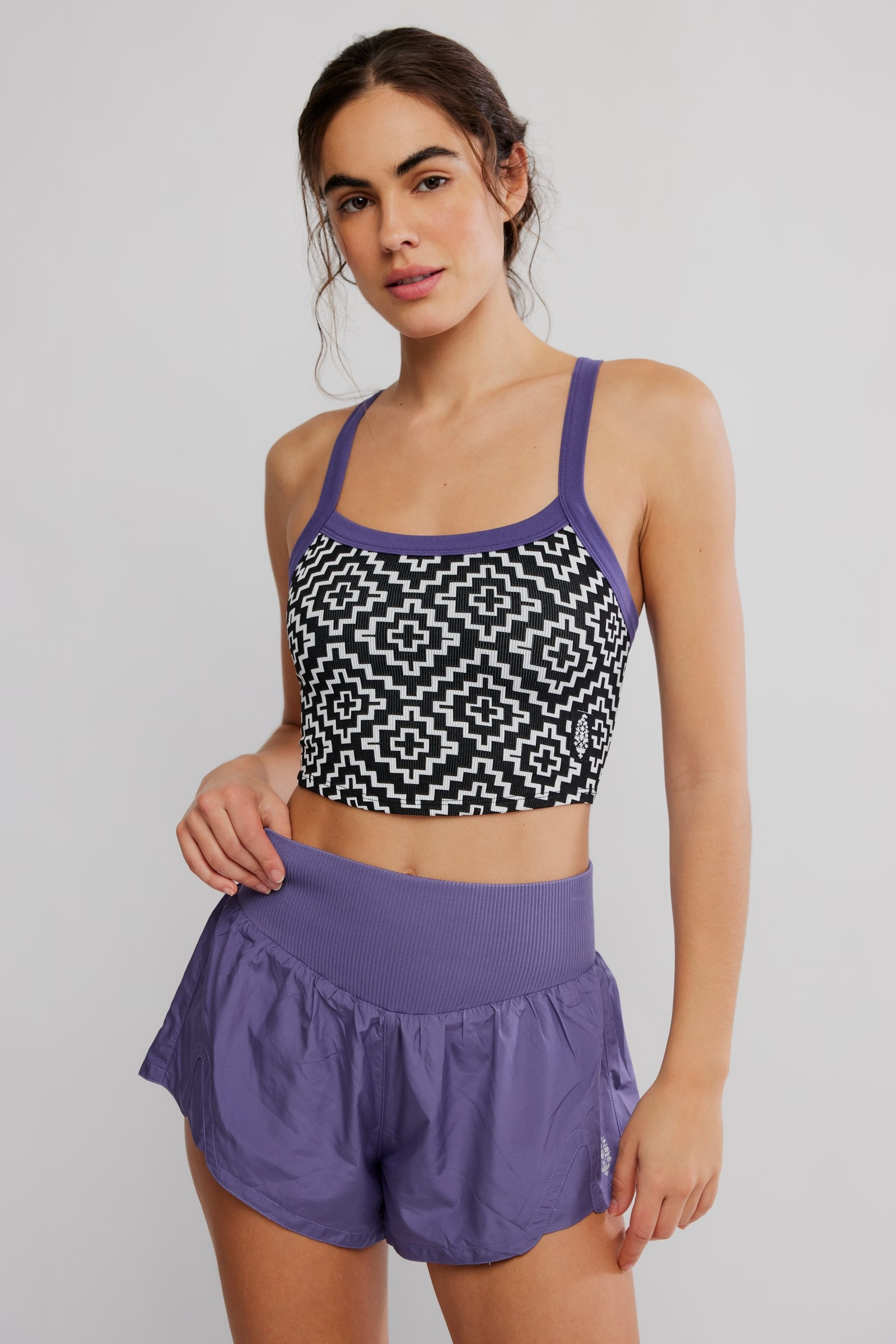 Seize the run in these so-flattering shorts, featuring a durable, water-resistant fabrication, built-in briefs and a knit high-rise waistband.