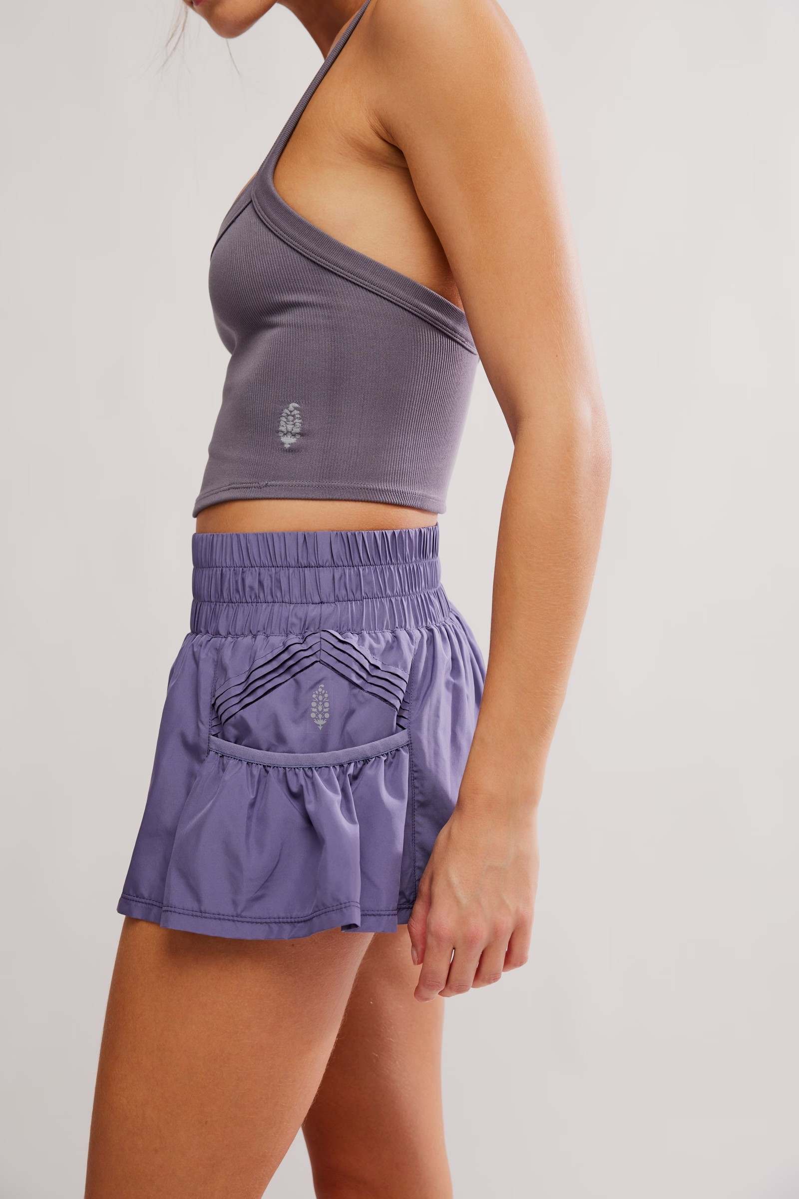 So flirty and fun shorts to spice up your workout attire, featured in a flowy style with a high-rise, smocked waistband and side pockets.