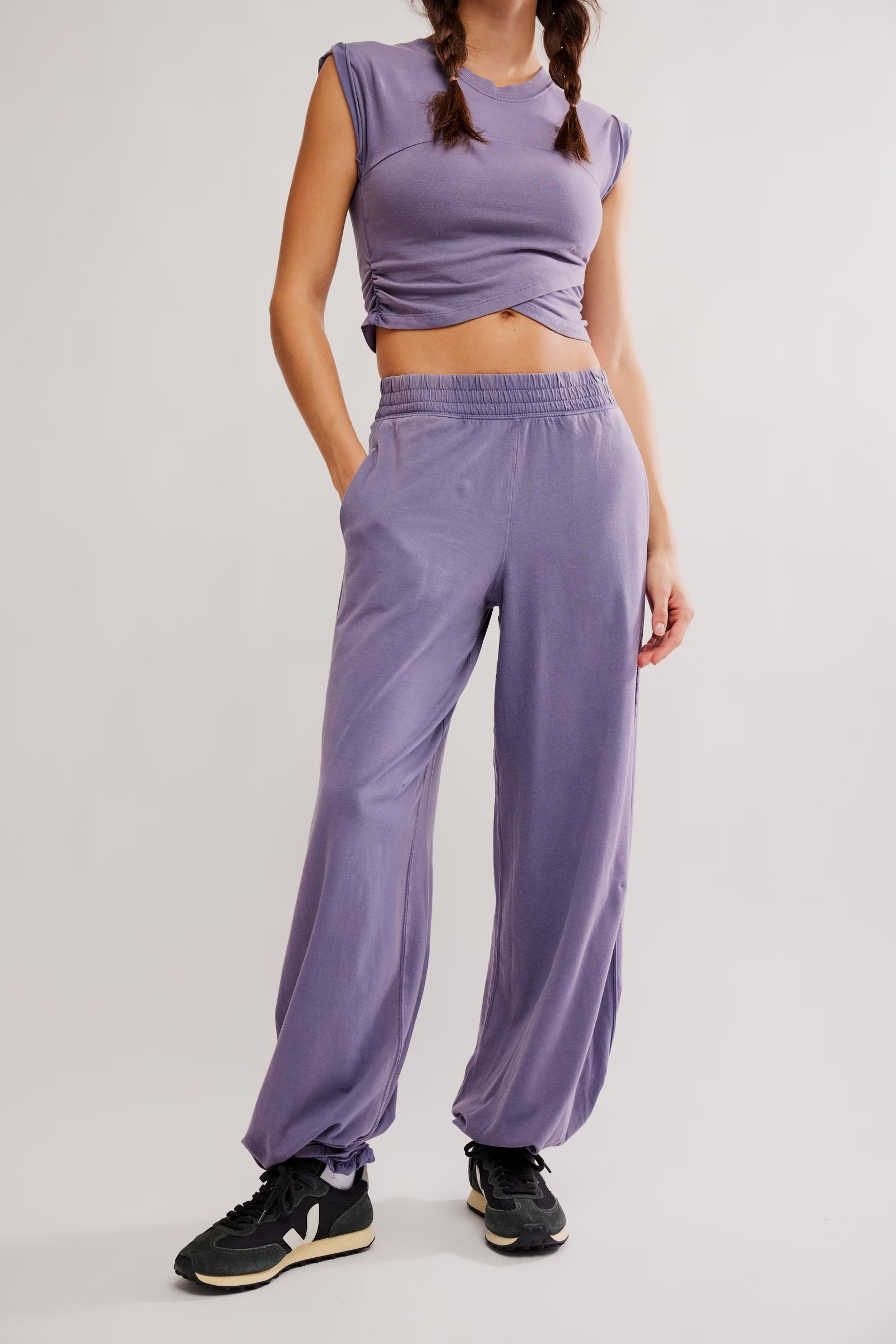 Effortlessly comfy, this set is easy to throw on before or after workouts, featuring a super soft fabrication and perfectly lived-in look.